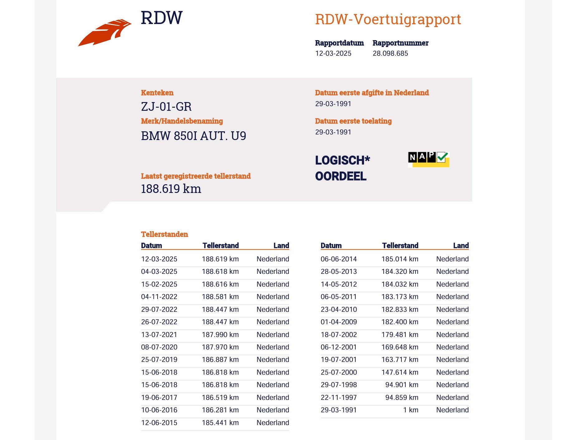KM stand 188.619 KM