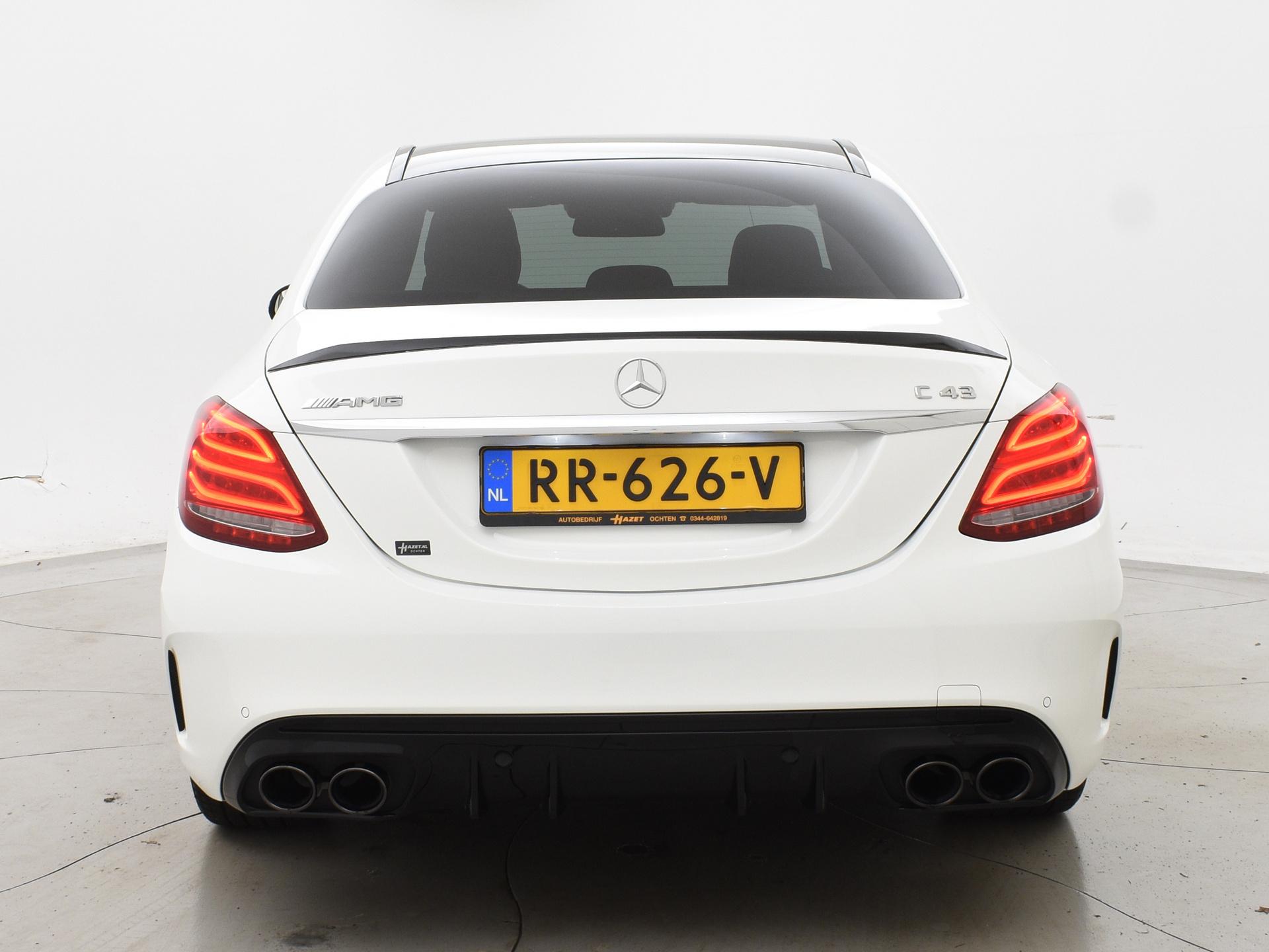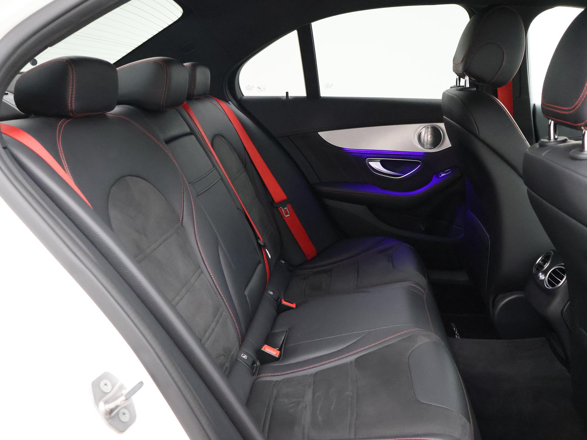 C43 AMG 3.0 V6 Bi-Turbo 367 PK 4matic vierwielaandrijving sedan automaat, Bijzonder compleet uitgerust met Head-up display, Uitgebreide sfeerverlichting met verschillende kleuren en verlichte luchtroosters, Alcantara middenconsole, Burmester premium sound, Distronic+ adaptive cruise control + actieve stuurassistentie, Dodehoek assistentie, Privacy glass, Zwarte raamlijsten, dak en buitenspiegels, Elektrische achterklep, Keyless-Go, Actieve parkeerassistent met sensoren voor + achter, Full LED koplampen LED Intelligent Light, LED achterlichten, Stoelverwarming, Zwart sportinterieur met verlengbaar zitvlak en rood stiksel, Sportuitlaatsysteem, Zwarte hemelbekleding, Leder sportstuurwiel, Bluetooth telefoon met audiostreaming, Adaptief onderstel met elektronisch regelbare schokdempers, Verlichte AMG dorpellijsten, Rode gordels, Diamond AMG grille, Climate control, Grootlichtassistent.